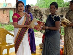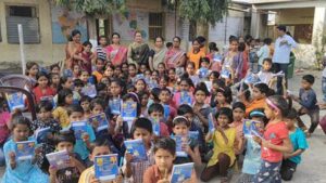 Understanding that education is the foundation of social progress, Sanghamitra Tai distributed notebooks, books, pens, slates, and other educational materials to needy students across Maharashtra. This initiative aimed to support children in their academic journey and provide them with essential resources.