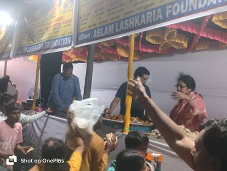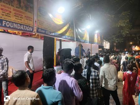 Near Versova Metro Station in the Versova Assembly area, the Aslam Lashkaria Foundation organized a massive food stall, where arrangements for meals and refreshments were made for lakhs of devotees. More than 50 volunteers worked tirelessly, continuously serving food and water to the visitors.